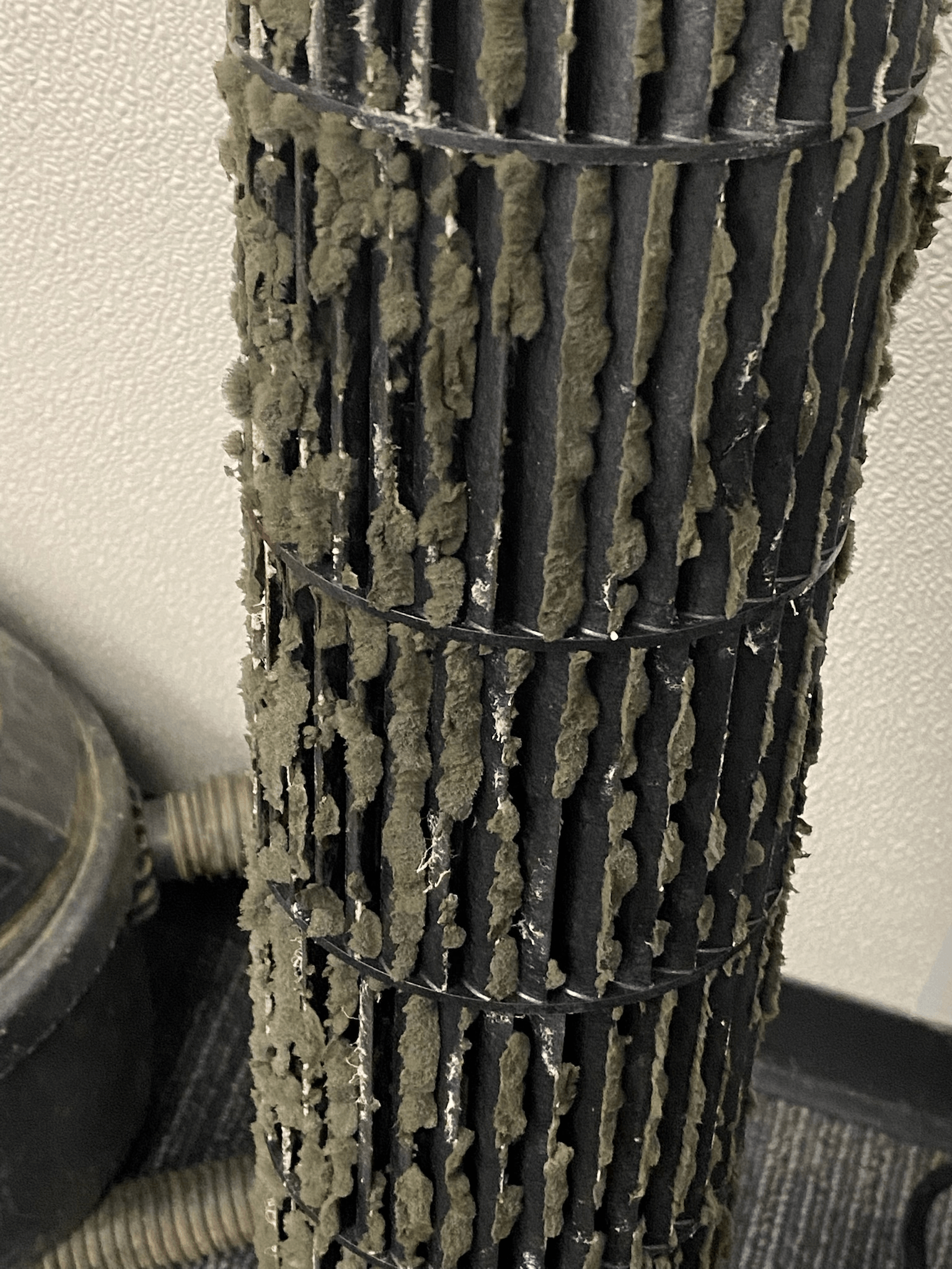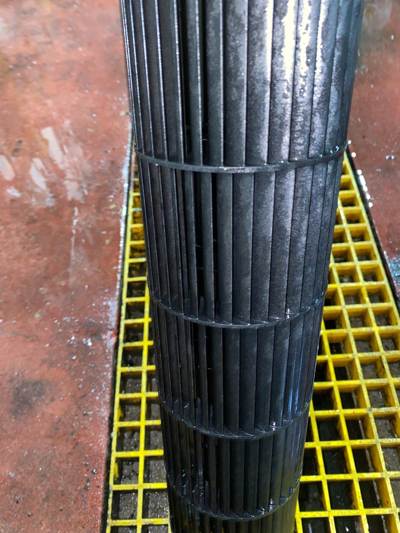 This is a blower wheel right after it was taken out of the unit. In our cleaning process, we take these out and wash them.
