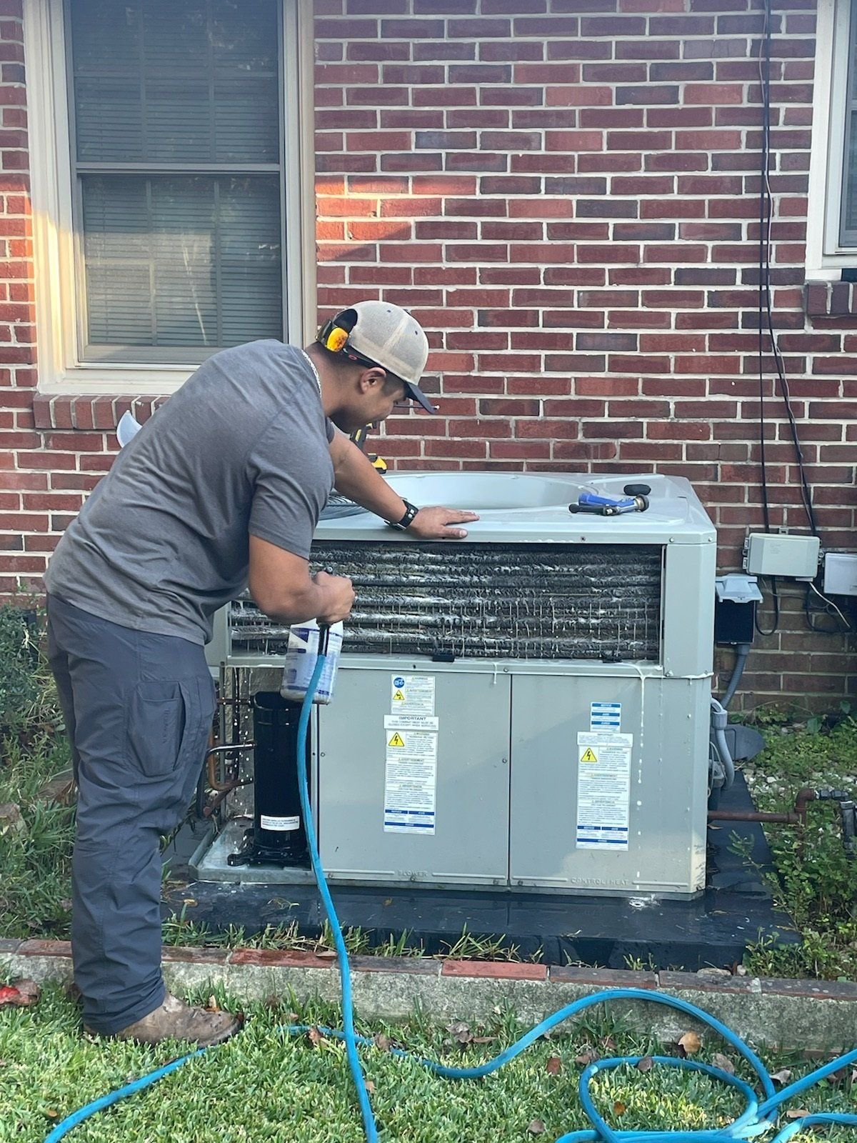 This shows one of our technicians going through part of the cleaning process on a residental unit.